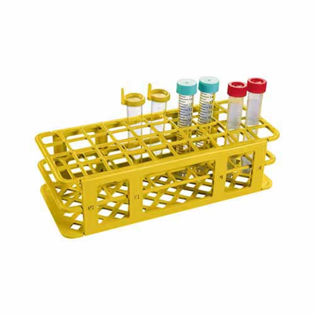 ESTANTE EM PP P/ 40 TUBOS DE ENSAIO. 21 MM. AMARELA. K30-4021Y